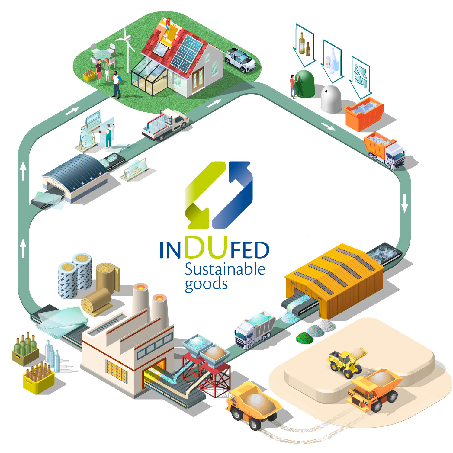 Isometric illustration of the glass cycle